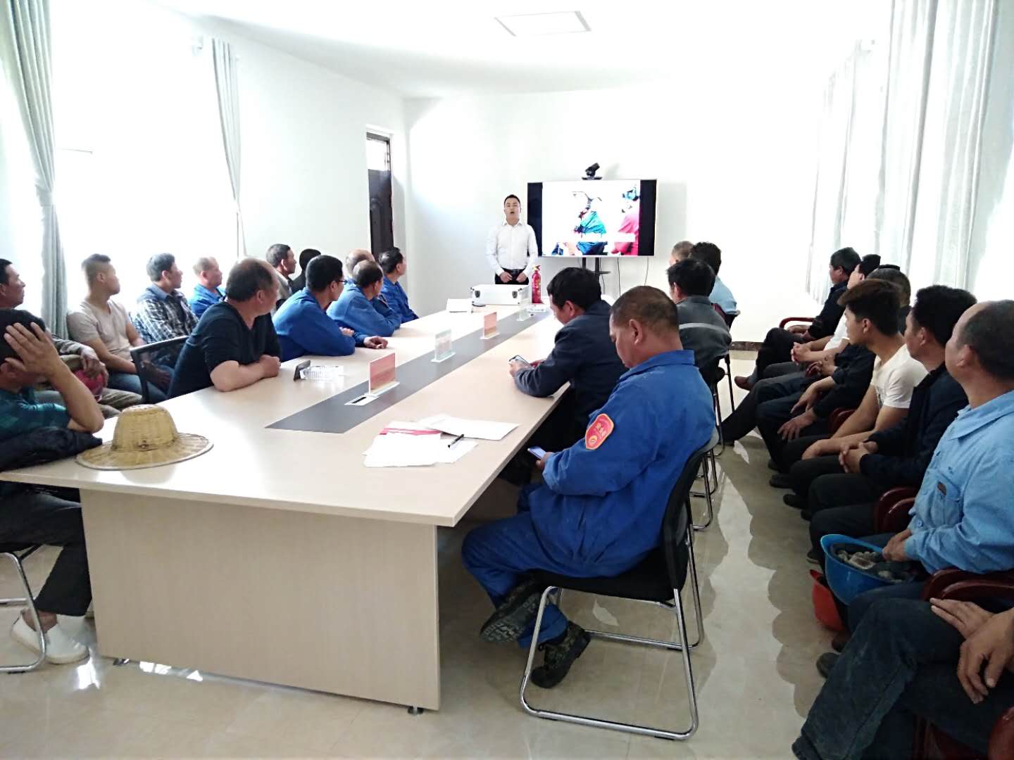 此次演練特邀請(qǐng)河南省消防培訓(xùn)中心教官,對(duì)參演人員針對(duì)露天礦山開采易發(fā)生的滑坡、坍塌、車輛、火災(zāi)典型事故案例及消防、人員急救知識(shí)進(jìn)行了視頻課件教學(xué)培訓(xùn)。參加人員有礦山車間和現(xiàn)代爆破公司共計(jì)30余人參加。